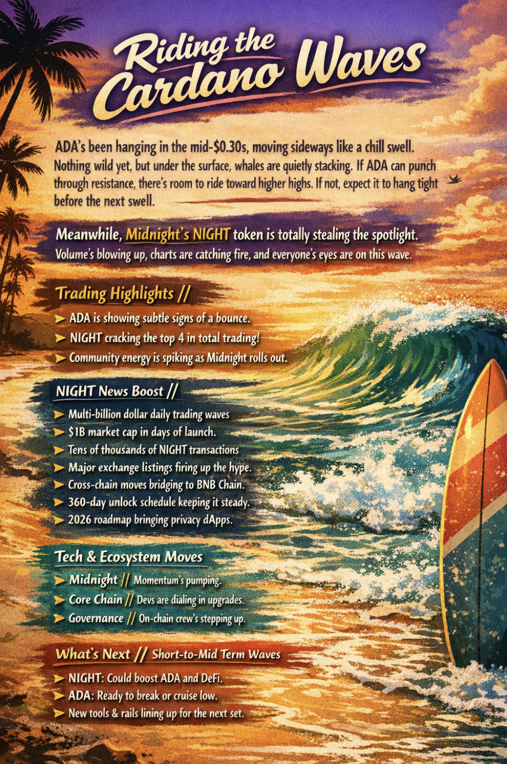 Cardano isn’t just about short-term waves - it’s about the pipeline, privacy layers, and real-world traction. Midnight’s hype is like that perfect offshore swell drawing everyone out, while core upgrades and governance improvements keep the foundation solid. Ride the wave now or paddle for the bigger swell later - either way, the lineup’s getting stronger.